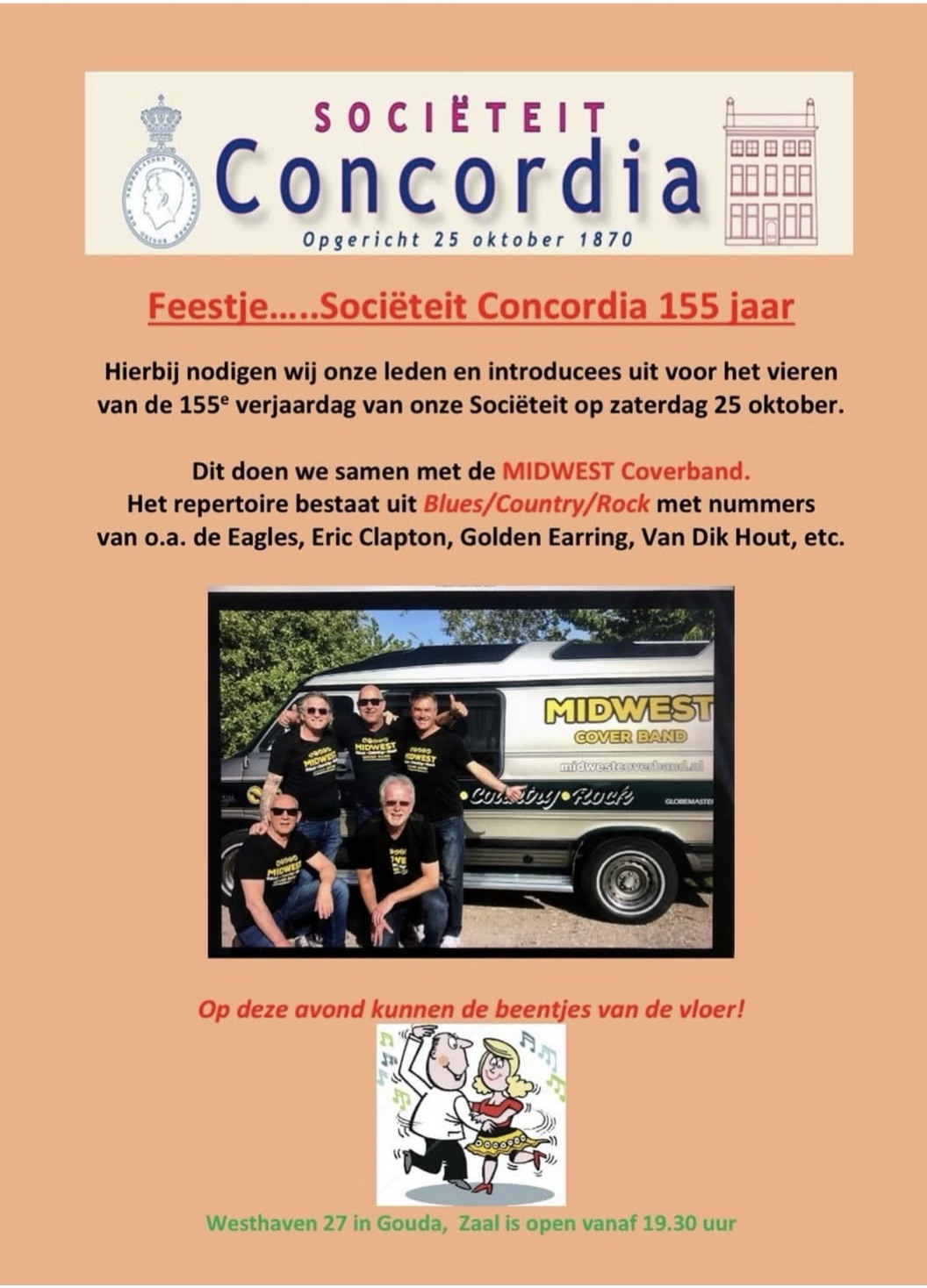 - Zaterdag 25-10-2025 Sociëteit Concordia Gouda 155 jarig bestaan, besloten feest